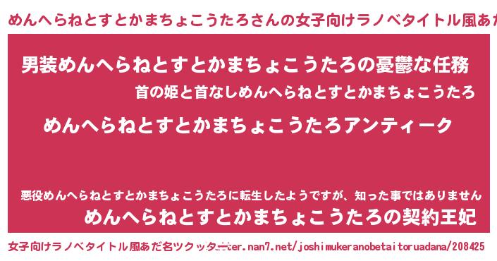 | 男性向けラノベタイトル風あだ名 | 『魔法科高校のめんへらねとすとかまちょこうたろ』 |