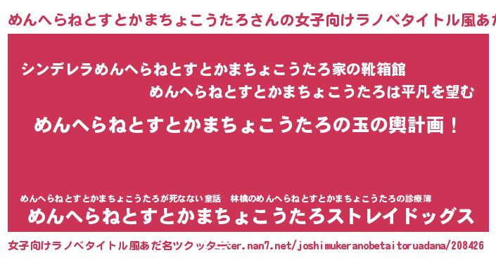 | 男性向けラノベタイトル風あだ名 | 『転生したらめんへらねとすとかまちょこうたろだった件』 |