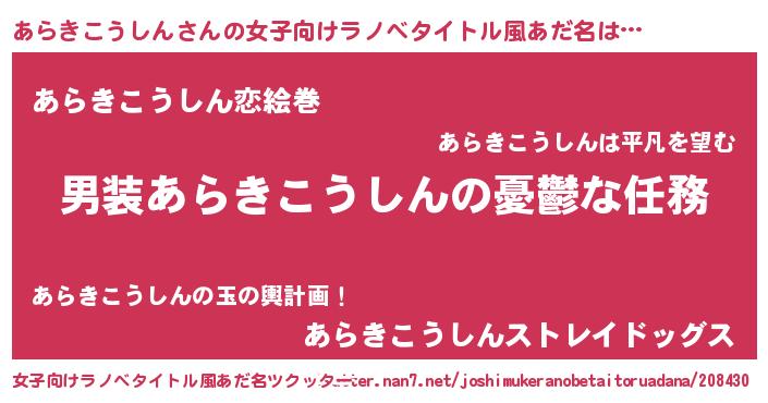 | 男性向けラノベタイトル風あだ名 | 『冴えないあらきこうしんの育てかた』 |