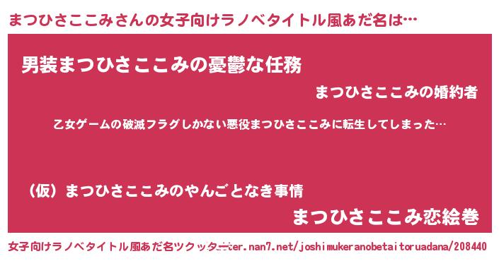 | 男性向けラノベタイトル風あだ名 | 『この素晴らしい世界にまつひさここみを!』 |