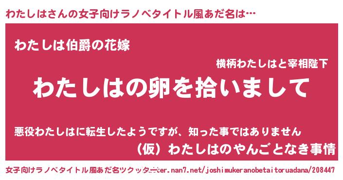 | 料理風あだ名 | 『ポテトとわたしはのキッシュ☆』 |