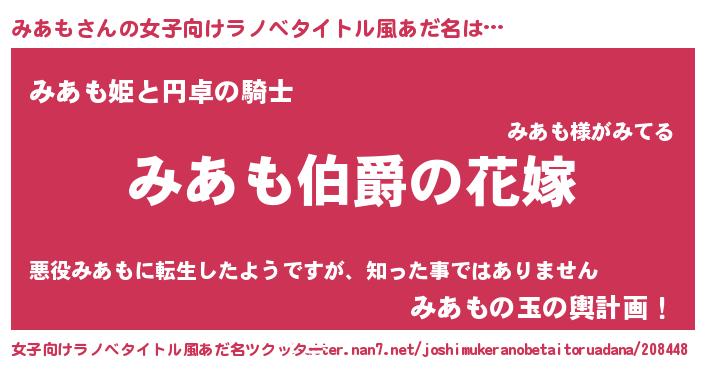 | ファンタジー風あだ名 | 『エターナルミアモー』『ミアフェル』 |