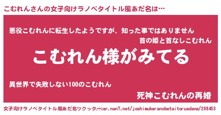 | 意味不明あだ名 | 『とにかく怪しいこむれん』 |