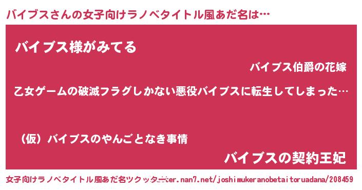 | 男性向けラノベタイトル風あだ名 | 『魔弾の王とバイブス』『バイブスの憂鬱』 |