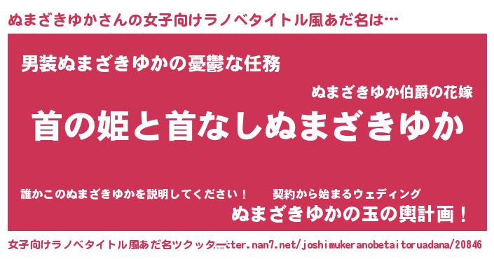 | 男性向けラノベタイトル風あだ名 | 『はたらくぬまざきゆかさま!』 |