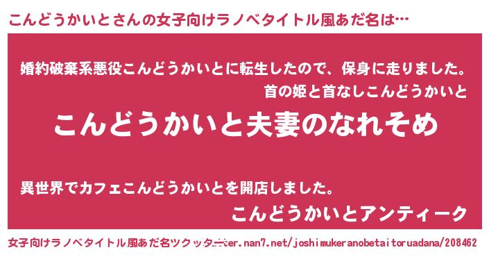 | 男性向けラノベタイトル風あだ名 | 『おまえをオタクにしてやるから、俺をこんどうかいとにしてくれ! 』 |