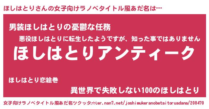 | ヘコむあだ名 | 『ほしはとり(震え声)』『ほしお』 |