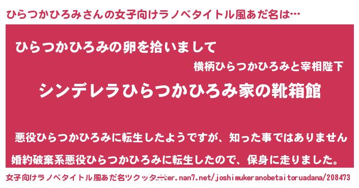 | 胡散臭い通販商品みたいなあだ名 | 『伝統あるサプリメント…その名も「ひらつかひろみ」』 |