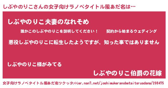 | 意味不明あだ名 | 『住所不定無職しぶやのりこ(43歳)』 |