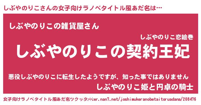 | 男性向けラノベタイトル風あだ名 | 『誰もが恐れるあのしぶやのりこが、ぼくの専属メイドになるようです。』 |