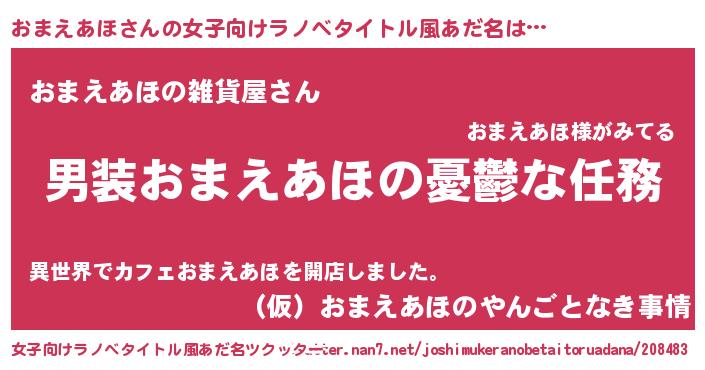 | 男性向けラノベタイトル風あだ名 | 『冴えないおまえあほの育てかた』 |