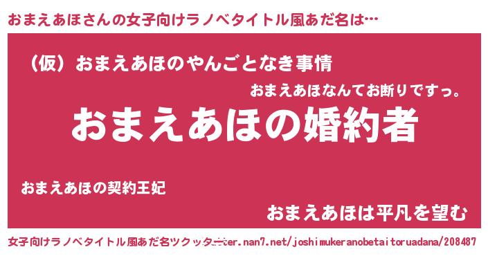 | 意味不明あだ名 | 『おまえあほフォーエバー』 |