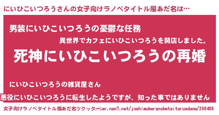| ヘコむあだ名 | 『にいひこいつろう(笑)』『なまこ酢』 |