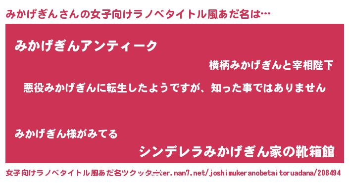 | ヘコむあだ名 | 『みか太郎』『みかげぎん(小並感)』 |