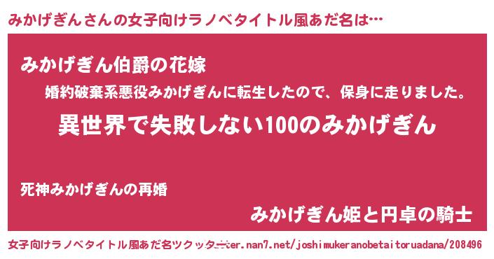 | 男性向けラノベタイトル風あだ名 | 『みかげぎんという概念が存在しない退屈な世界 』 |