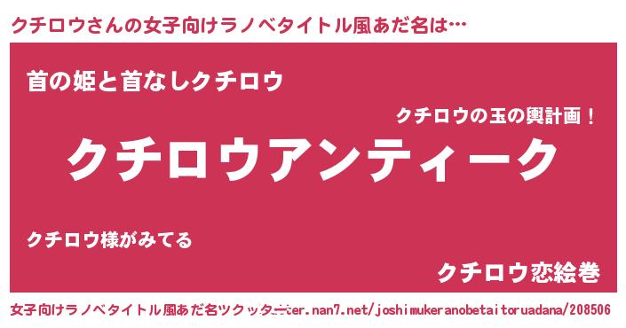 | 意味不明あだ名 | 『自称クチロウ』『たけのこ科クチロウ属』 |