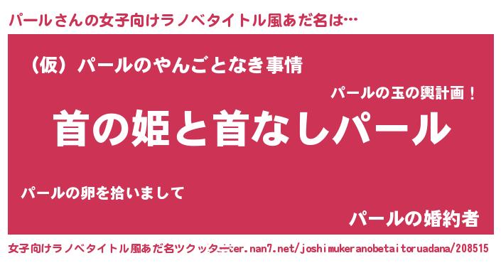 | 男性向けラノベタイトル風あだ名 | 『はたらくパールさま!』『パールの憂鬱』 |