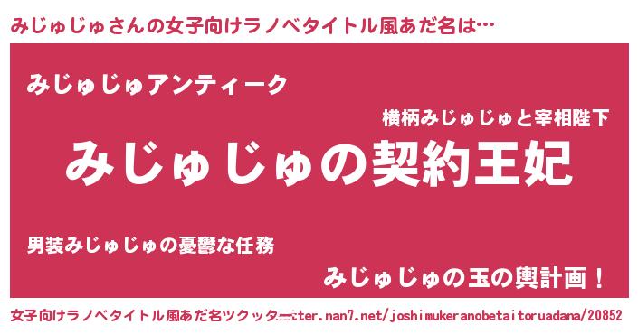 | 男性向けラノベタイトル風あだ名 | 『みじゅじゅという概念が存在しない退屈な世界 』 |