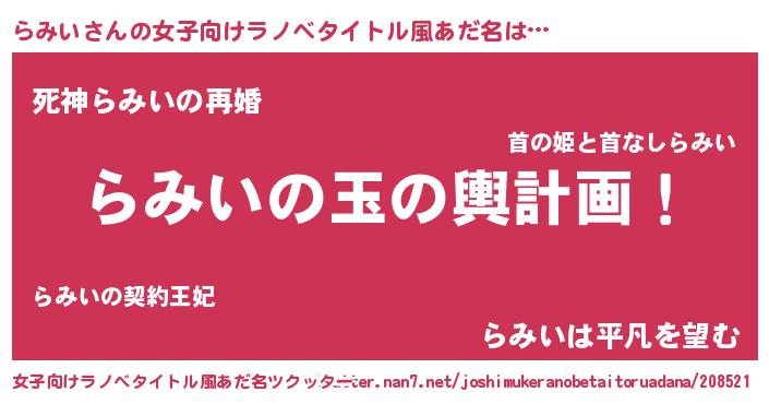 | ヒーロー風カッコイイあだ名 | 『慈愛の使者らみい』『天弓騎士ラミ』 |