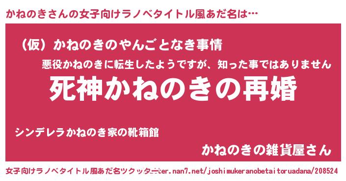 | 男性向けラノベタイトル風あだ名 | 『ノーゲーム・ノーカネノキ』 |