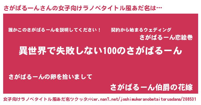 | 男性向けラノベタイトル風あだ名 | 『さがばるーんという概念が存在しない退屈な世界 』 |