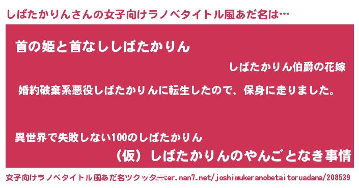| 男性向けラノベタイトル風あだ名 | 『シバタカリンスレイヤー』 |