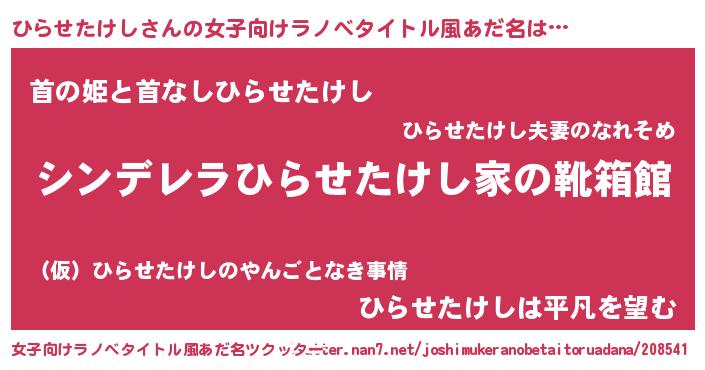 | 胡散臭い通販商品みたいなあだ名 | 『伝統あるサプリメント…その名も「ひらせたけし」』 |