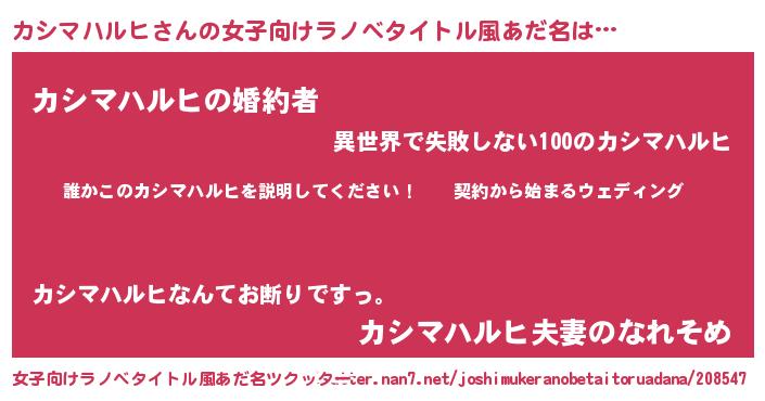| 男性向けラノベタイトル風あだ名 | 『カシマハルヒアートオンライン』 |