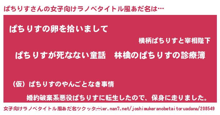 | 男性向けラノベタイトル風あだ名 | 『魔弾の王とぱちりす』『ぱちりすの憂鬱』 |
