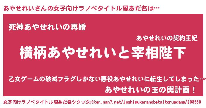 | ヘコむあだ名 | 『あやせれい(笑)』『あやっ子』 |