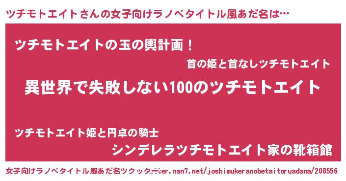 | 男性向けラノベタイトル風あだ名 | 『ツチモトエイトという概念が存在しない退屈な世界 』 |
