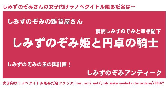 | 恥ずかしいあだ名 | 『プリティーしみずのぞみ』『しみっちょ』 |