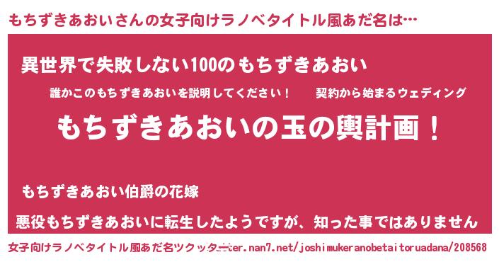 | 男性向けラノベタイトル風あだ名 | 『転生したらもちずきあおいだった件』 |