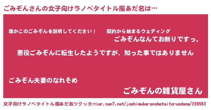 | 胡散臭い通販商品みたいなあだ名 | 『あなたにだけ特別に提供する100年もののヴィンテージワイン…その名も「ごみぞん」』 |