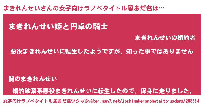 | 胡散臭い通販商品みたいなあだ名 | 『あなたにだけ特別に提供する世界で10本だけ現存している希少なブランデー…その名も「まきれんせい」』 |