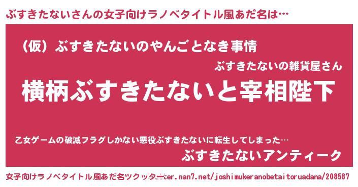 | 男性向けラノベタイトル風あだ名 | 『ぶすきたないに滅ぼされるだけの簡単なお仕事です』 |