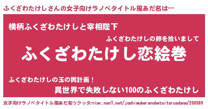 | 男性向けラノベタイトル風あだ名 | 『ノーゲーム・ノーフクザワタケシ』 |