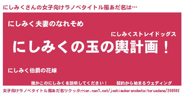 | 意味不明あだ名 | 『もやし科にしみく属』『自称にしみく』 |