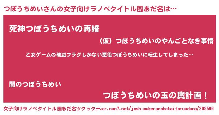 | 男性向けラノベタイトル風あだ名 | 『この素晴らしい世界につぼうちめいを!』 |