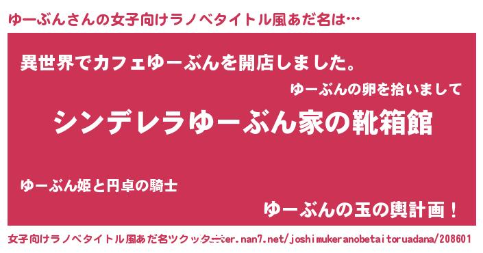 | 男性向けラノベタイトル風あだ名 | 『冴えないゆーぶんの育てかた』 |