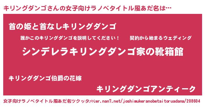 | 男性向けラノベタイトル風あだ名 | 『冴えないキリングダンゴの育てかた』 |