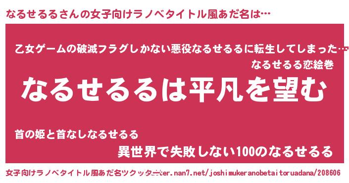 | 胡散臭い通販商品みたいなあだ名 | 『信頼と実績のサプリメント…その名も「なるせるる」』 |