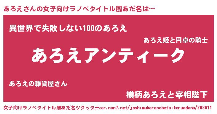| 意味不明あだ名 | 『自称あろえ』『永久保存あろえ』 |