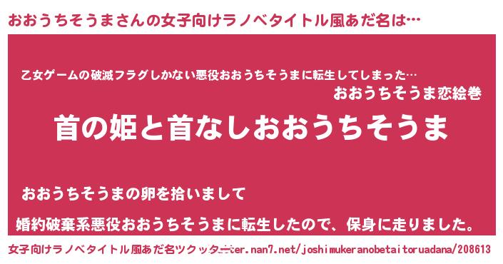 | 男性向けラノベタイトル風あだ名 | 『はたらくおおうちそうまさま!』 |