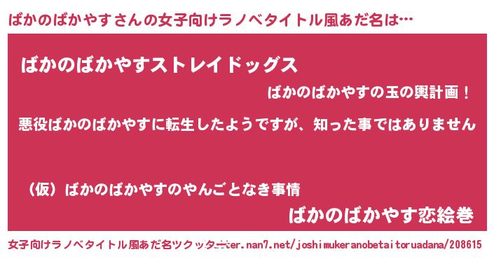 | 男性向けラノベタイトル風あだ名 | 『この素晴らしい世界にばかのばかやすを!』 |