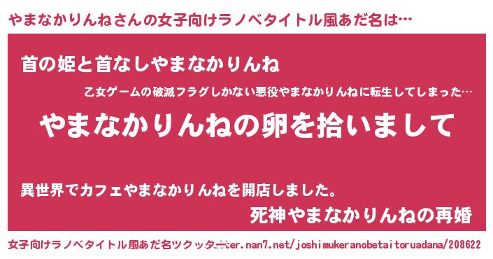 | 胡散臭い通販商品みたいなあだ名 | 『伝統あるサプリメント…その名も「やまなかりんね」』 |
