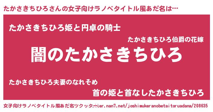 | 男性向けラノベタイトル風あだ名 | 『Re:たかさきちひろから始める異世界生活』 |