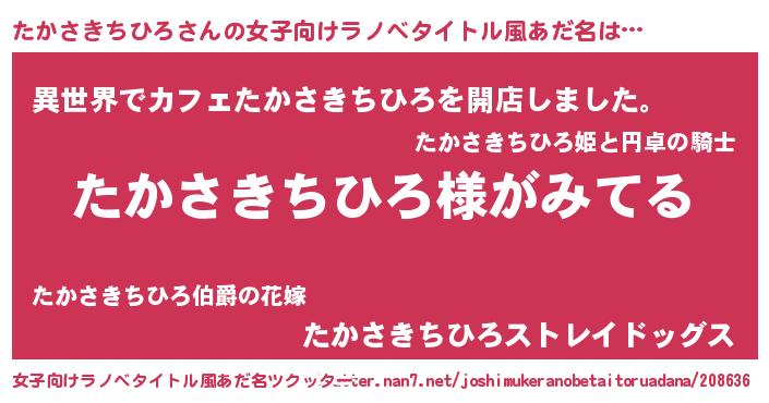 | 男性向けラノベタイトル風あだ名 | 『たかさきちひろの嫁は女の子じゃないと思った?』 |