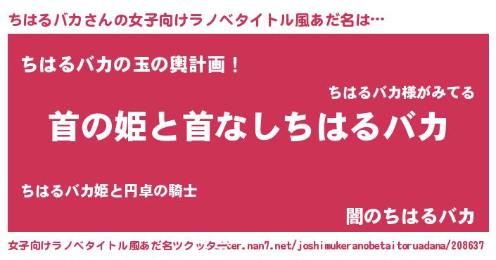 | 男性向けラノベタイトル風あだ名 | 『はたらくちはるバカさま!』 |