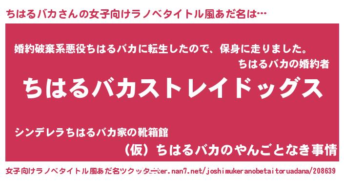 | 男性向けラノベタイトル風あだ名 | 『Re:ちはるバカから始める異世界生活』 |